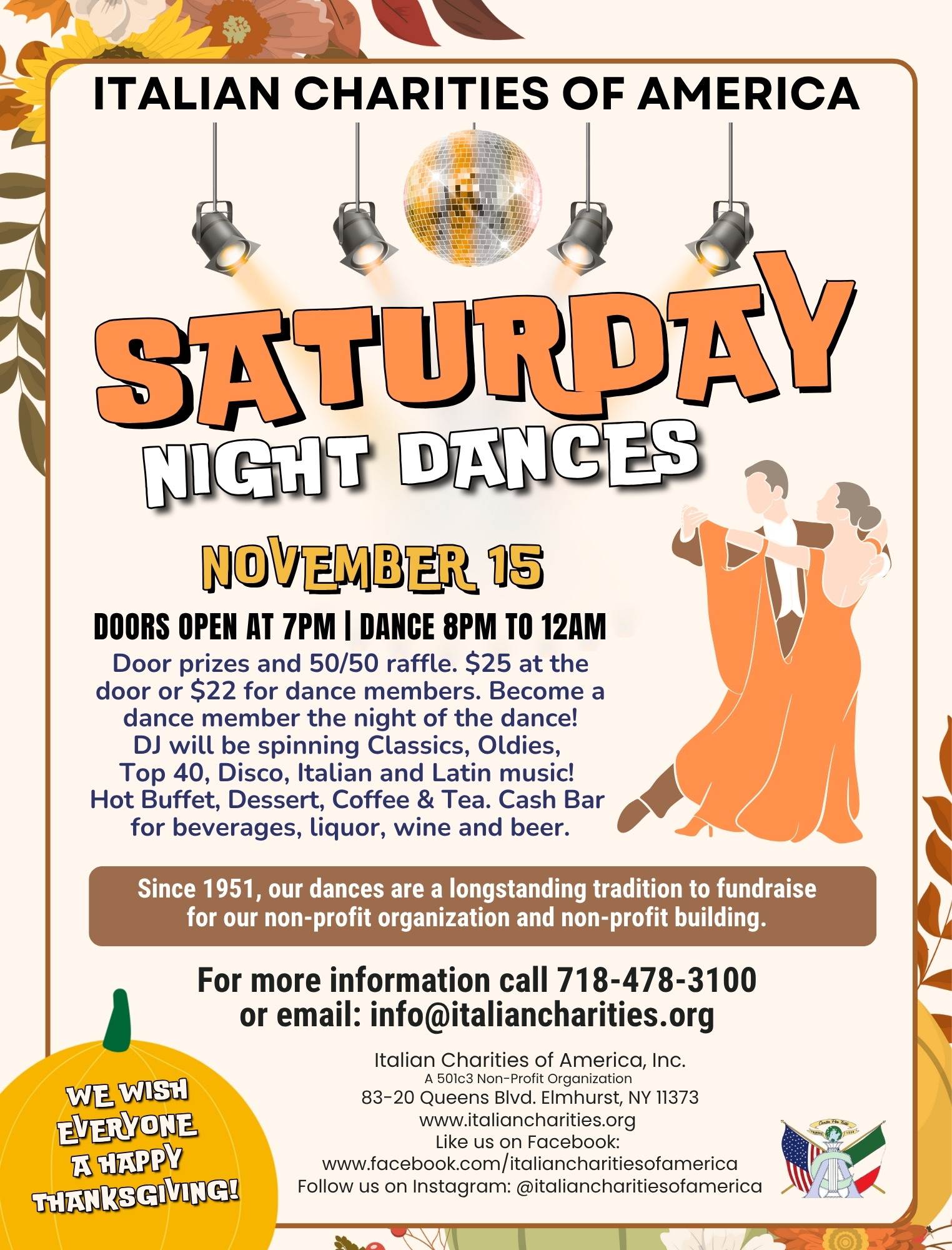 ITALIAN CHARITIES OF AMERICA Saturday Night Dances